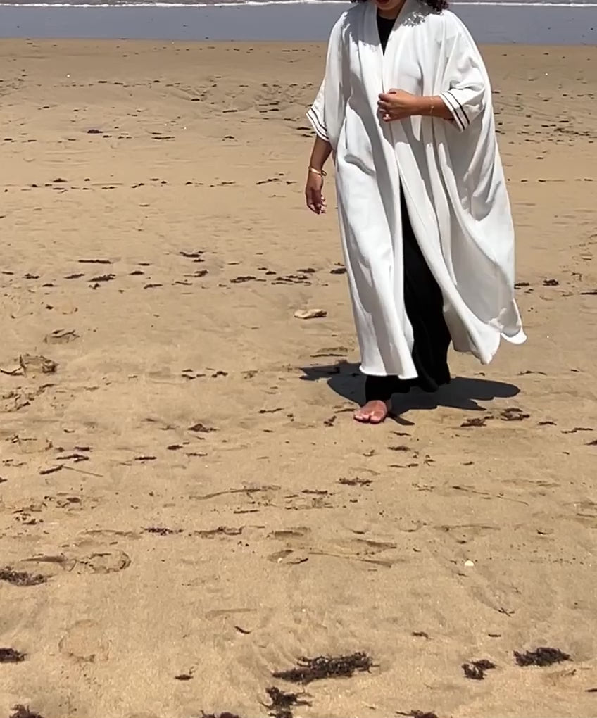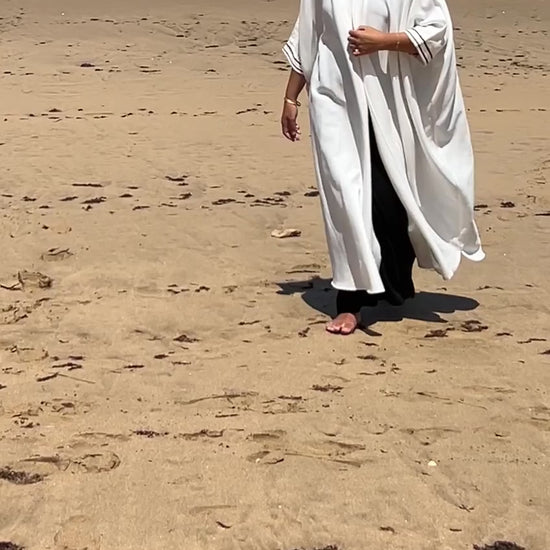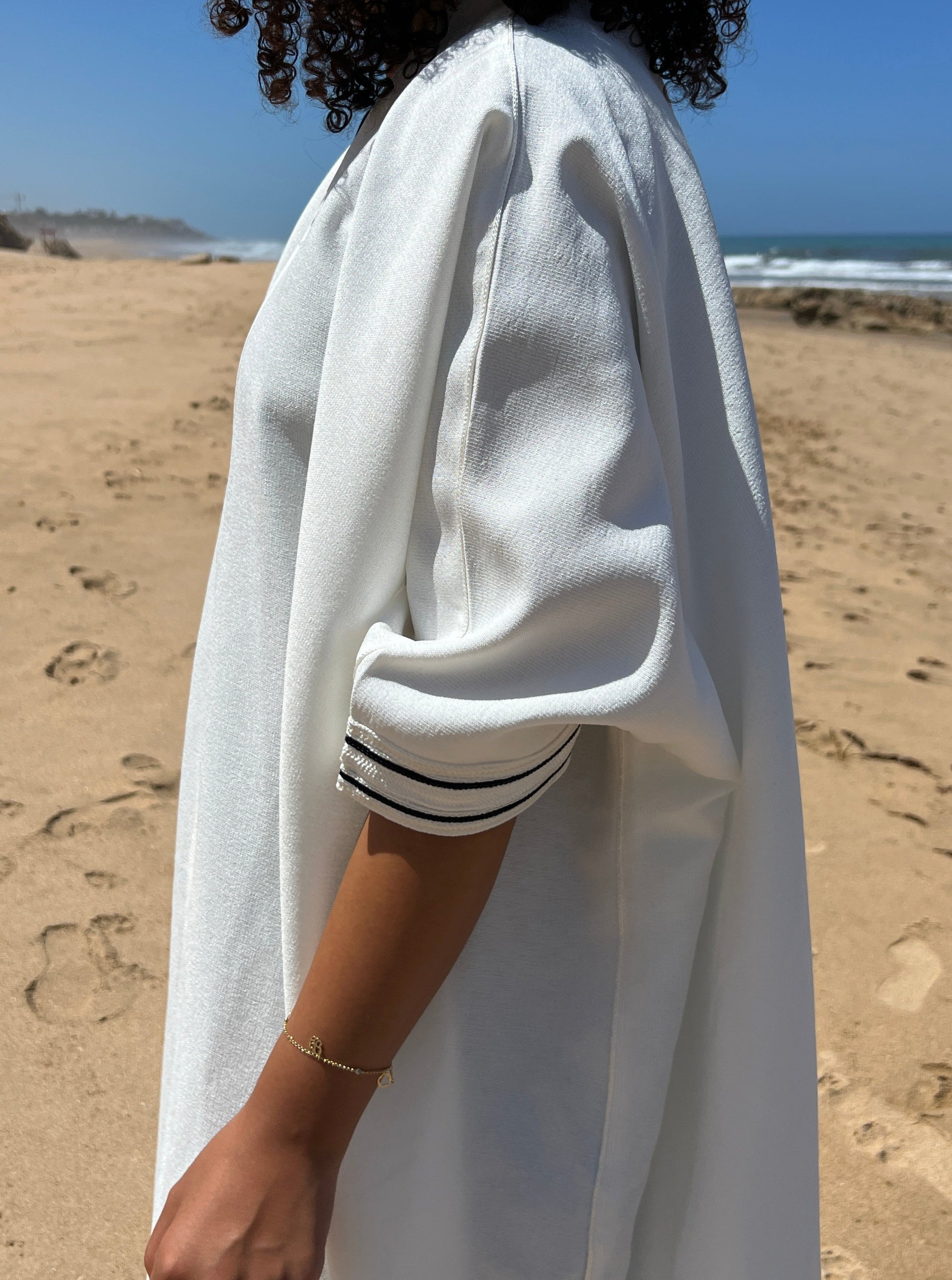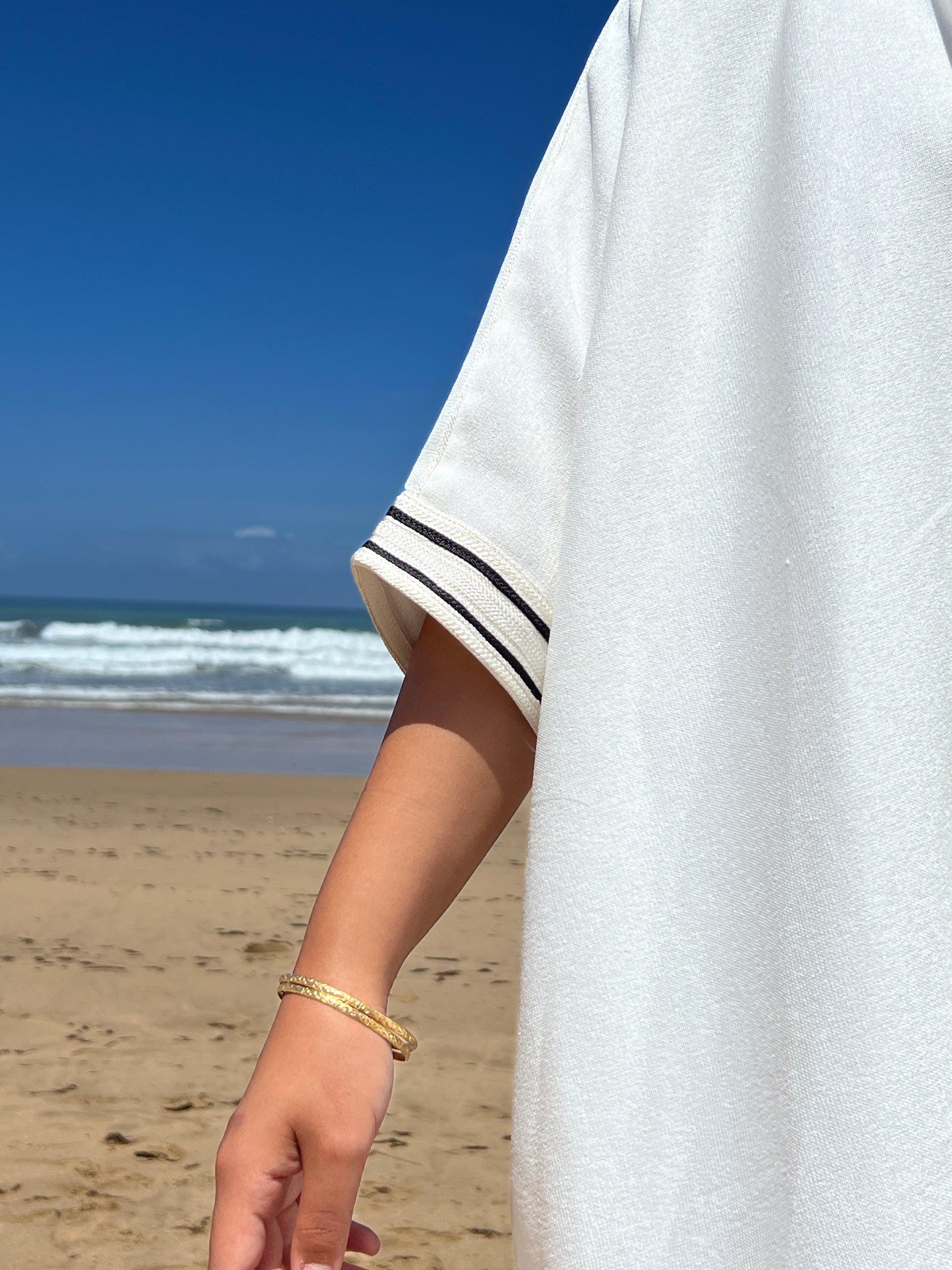 Handmade and tailored, this traditional garment features a timeless silhouette and delicate details. From the embroidered accents to the elegant lines, every element of this piece is a testament to the artistry and richness of Moroccan heritage. Baya branded label.